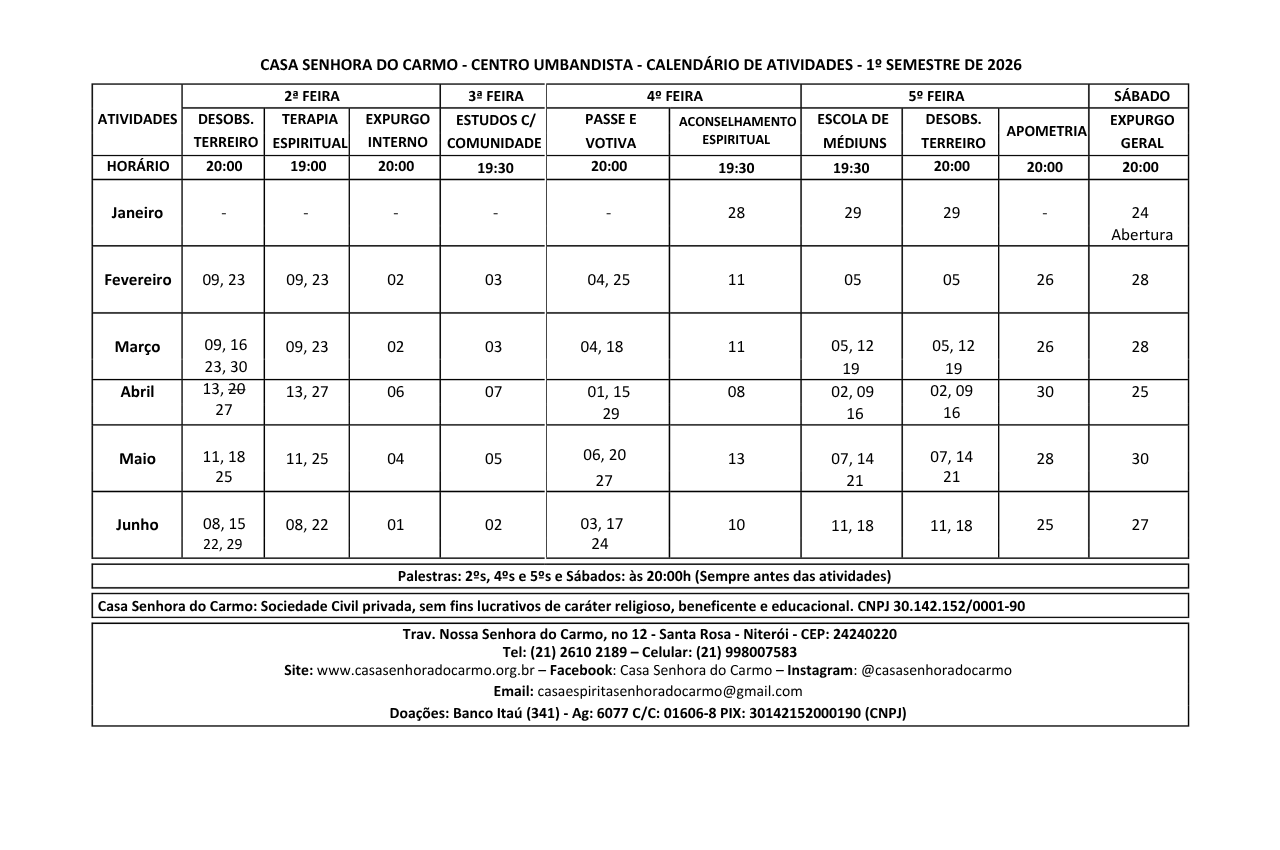 A Casa está aberta semanalmente em datas e horários, conforme apresentado em nosso calendário semestral disponibilizado aqui, e em nossas redes sociais (Instagram e facebook).