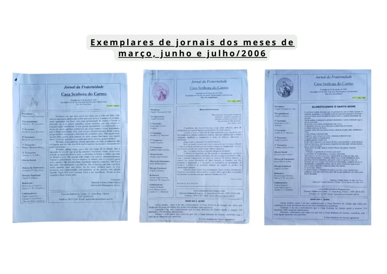 - Fotos de jornais publicados pela Casa Senhora do Carmo: